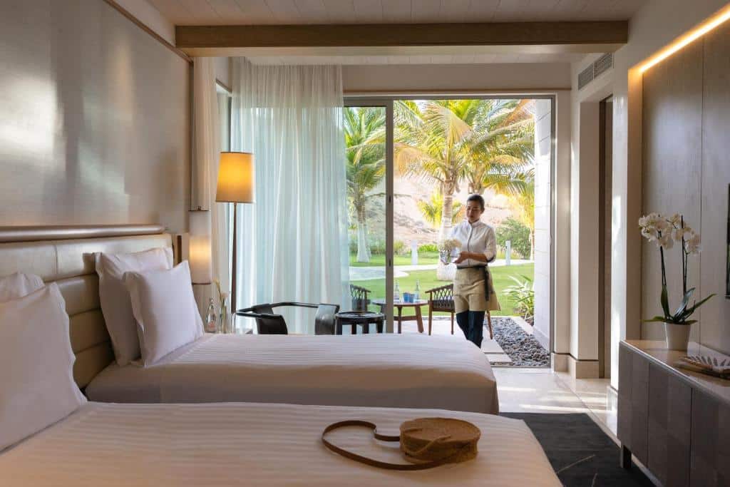 À quelques minutes, le Jumeirah Muscat Bay s’ouvre sur une crique paisible. Ses suites contemporaines, son spa Talise et ses restaurants raffinés – du méditerranéen au panasiatique – invitent à la détente absolue. Ici, yoga au lever du soleil, paddle sur les eaux turquoise et randonnées dans les wadis se conjuguent en parfaite harmonie.